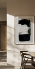 Ein auffälliges monochromes abstraktes Poster mit schwungvollen schwarzen und weißen Pinselstrichen, überlagert mit subtilen Liniendetails. Die starken Kontraste und strukturierten Oberflächen schaffen eine minimalistische und dennoch kraftvolle Komposition – perfekt für moderne Innenräume, skandinavisches Design oder zeitgenössische Galeriewände.