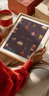 En stemningsfuld juleplakat, der samler sæsonens hyggeligste ting: nøddeknækker, julekugler og ornamenter, gran og snefnug, små gaver, stjerner og en lun, vintagefarvet palet. Motivet emmer af humor og nostalgi og gør sig perfekt i stuen hele december. Design af NKTN. Illustreret i en legende, grafisk stil med nik til klassiske julekort.
