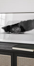 Ein humorvolles Schwarz-Weiß-Foto einer neugierigen Katze, die mit großen, überraschten Augen aus einer Papiertüte späht. Der verspielte Ausdruck und der minimalistische Aufbau machen dieses Bild zu einem bezaubernden und unterhaltsamen Bild für Katzenliebhaber.