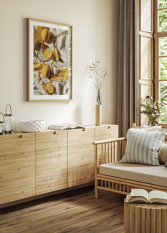 Poster Lebendige Zitronen auf strukturiertem Stoff
