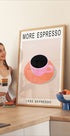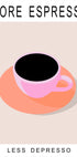Das „More Espresso Less Depression“-Poster ist ein verspieltes und erhebendes Kunstwerk für Kaffeeliebhaber, die ein gutes Lachen mit ihrem Latte schätzen. Mit einer minimalistischen Illustration eines starken schwarzen Espressos in einer pastellrosa Tasse und Untertasse sowie dem witzigen Text „More Espresso, Less Depresso“ ist dies eine charmante Hommage an die belebende Magie des Kaffees. Das klare Design und die leuchtenden Farben machen es perfekt für Küchen, Cafés, Büros oder Cafés – überall dort, wo Sie einen Schuss Koffein und Humor wünschen. Es ist das ideale Geschenk für Kaffeeliebhaber mit Sinn für Humor und einer Vorliebe für moderne, minimalistische Kunst.