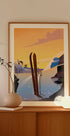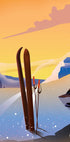 „Ski Trip“ von Nicholas fängt die Ruhe vor dem abendlichen Lauf ein: Verschneite Bergsilhouetten spiegeln sich in einem stillen See, während Skispuren und aufrechte Stöcke Abenteuer suggerieren. Der Farbverlauf des Himmels von warmem Orange zu tiefem Lila wirft einen verträumten Glanz über die Landschaft und lädt zu winterlicher Flucht ein. Perfekt für Träumer, Fernweh und Alpenseelen.
