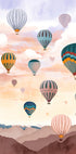A dreamy poster with colorful hot air balloons floating over a pastel sky and mountain peaks. The artwork expresses a sense of adventure, freedom and joy - ideal for children's rooms, travel lovers or as uplifting wall art.