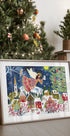 Angel of Peace af Caroline Bonne Müller skildrer en stille vinternat: En lysende engel med glorie og brede vinger svæver over en sneklædt landsby, mens blide snefnug falder. Duer og en ugle følger i flugten, og et fredeligt rådyr med flotte gevirer står under månen, badet i nordisk ro. En poetisk hyldest til håb, vintermagi og stille glæde.