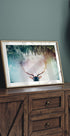 A dreamy surrealist art print that combines the majestic silhouette of a deer with a misty forest landscape. This double exposure work gives a spiritual and mystical atmosphere. Perfect for adding a sense of fantasy and wilderness to the home.