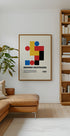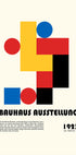 A distinctive Bauhaus exhibition poster from 1923 with bold geometric shapes in red, blue, yellow and black. This vintage-inspired design pays homage to the Bauhaus movement with abstract shapes, clean lines and a minimalist layout. A timeless piece of art deco and modernist design history.