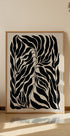 A bold and elegant poster with abstract black leaf silhouettes on a beige background. This minimalist botanical artwork combines organic shapes with strong contrasts, perfect for modern and contemporary interiors.