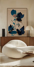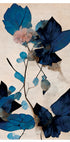 A refined botanical work of art with fine dried flowers and striking blue leaves on a soft beige background. The contrast between the strong blue shades and the muted background creates a sophisticated and timeless expression, ideal for both modern and classic interiors.