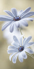 A fresh and bright botanical work of art with Cape daisies in full bloom. With delicate white petals with a soft purple tinge, set against slender green stems, this bright floral composition captures the essence of summer gardens. Perfect for adding a natural and elegant touch to any room.