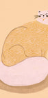 A whimsical illustration of a white cat wearing a patterned butter yellow sweater with wave-like patterns. The modern and cozy style, combined with a soft pastel palette, makes it perfect for eclectic interiors, children's rooms or as a fun piece of art for cat lovers.