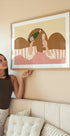 A playful and stylish illustration of champagne served in bed, with hands with red nails holding a bottle and glass against cozy striped bedding. Exuding enjoyment, celebration and modern charm, this print makes a perfect statement for interiors inspired by joy, relaxation and stylish lifestyle moments.