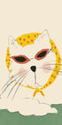A whimsical retro style illustration of a cat wearing smart sunglasses and a yellow polka dot scarf. With playful lines and a nostalgic mid-century feel, this piece combines humor and charm and makes a joyful statement for cat lovers and retro-inspired interiors.