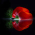 A juicy red paprika lies freshly chopped on a shiny, reflective surface, where light and shadow create a calm, modern composition. The fresh seed pieces and sharp edges provide energy, while the clean background creates balance. A stylish kitchen motif by Wieteke de Kogel, perfect for gastronomic spaces. And everyday poetry.