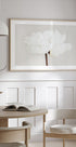 A white peony unfolds its silky petals against a soft gray background, where delicate pink shades and fine green strokes create calm and poetry. The simple still life adds timeless elegance and Nordic minimalism to the room—perfect as a quiet focal point in the living room, bedroom or creative corners. A discreet tribute to the beauty of nature.