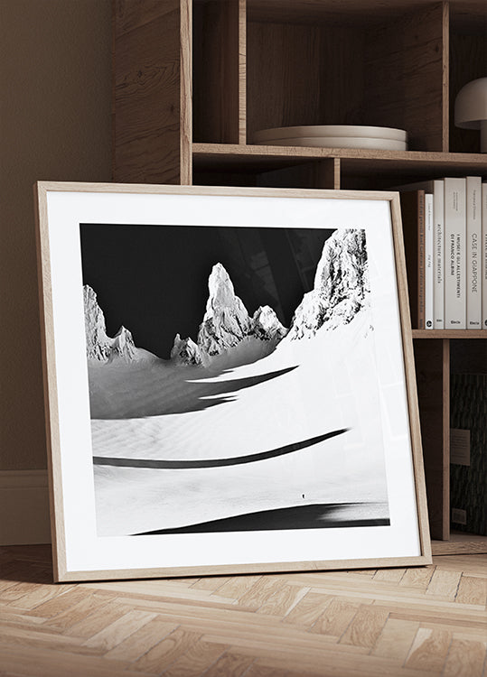 Small and big by Åsmund Keilen captures a single ski track in a colossal, black-and-white mountain landscape. A small skier moves under steep ridges and vast expanses of snow in Norway, where the winter light cuts sharply through the silence. A dramatic study in scale, courage and thoughtful calm that calls for adventure and reflection.
