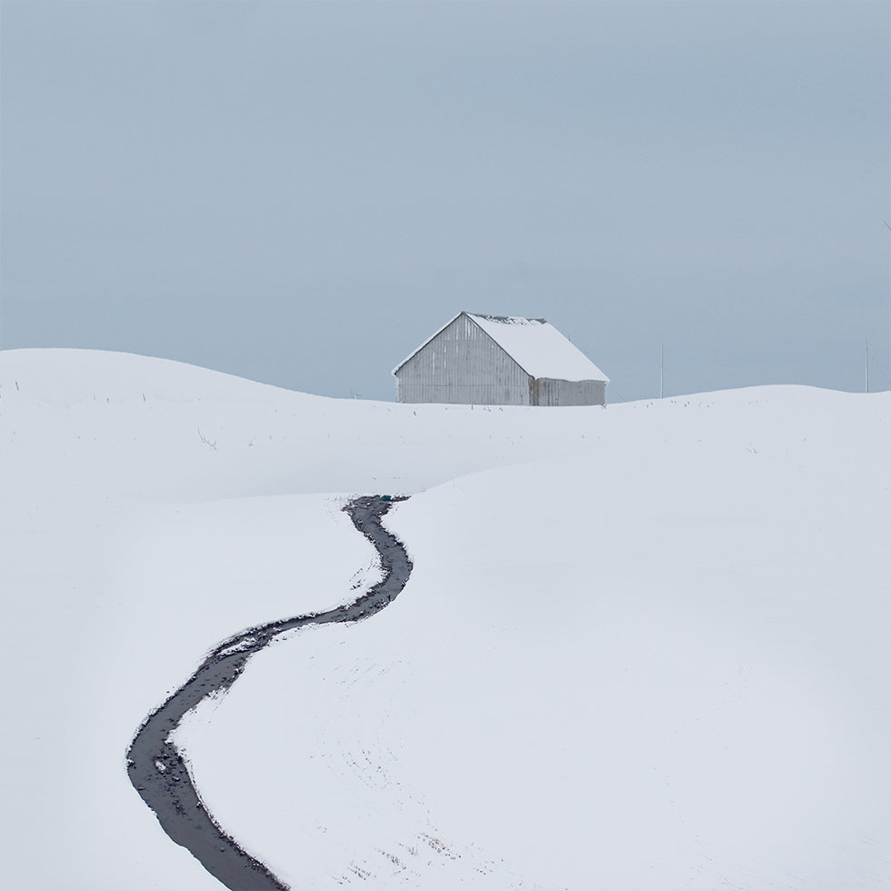 En stille vinterdag folder sig ud i et sneklædt landskab: en ensom hytte ved en stille strøm, granernes grene tunge af frost og himlen i bløde, blege nuancer. The Cabin af Xiang Wei indfanger roen, kulden og den klare luft – et motiv, der bringer nordisk minimalisme og fordybende stilhed ind i rummet med eftertanke.