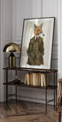 A charming, anthropomorphic portrait of a fox in a tailored suit, with pipe and distinguished mine and aristocratic being - a nod to the classic elegance of vintage portraiture. Mike Koubou's work combines humor and nostalgia in a clean, green-tinged universe that lifts both living room and work wall - with personality.