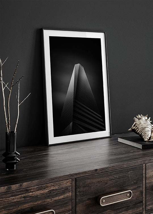 Rise into Madrid's skyline with this striking black-and-white photograph of Torre PwC. Captured by Mohammad Mirza, the long-exposure clouds sweep past the tower's curved glass, carving sharp contrasts and elegant lines. A moody, modern cityscape celebrating Spain's soaring urban architecture. Perfect for minimalist interiors.