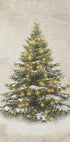 A cozy, vintage-style evergreen tree stands lightly sprinkled with snow, while warm golden lights twinkle between the branches. The subdued, paper-textured background and gentle snowfall create a calm and nostalgic Christmas atmosphere—ideal for a classic seasonal gallery wall or a simple winter corner.