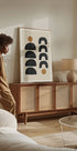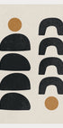 Sellel kaasaegse kunsti plakatil on rütmiline mustade poolringide muster ja hobuserauakujulised kaared, mida rõhutavad kaks maalähedast ookrivärvi täppi. Tasakaalustatud kompositsioon ja neutraalne värvipalett muudavad selle mitmekülgseks sisustusvalikuks moodsatesse, boho- ja Põhjamaadest inspireeritud kodudesse. Ideaalne eraldiseisvana või kombineerituna teiste abstraktsete teostega minimalistlikul galeriiseinal.