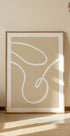 Moodne minimalistlik valgete voolavate joontega plakat pehmel beežil taustal. Abstraktne disain toob igasse ruumi lihtsuse, tasakaalu ja elegantsi.