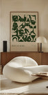 Silmatorkav Arty Guava (2024) kujundlik plakat, millel on beežil taustal sügavrohelised paksud abstraktsed kehakujud. Kunstiteos uurib vormi, liikumist ja inimlikku väljendust kaasaegses graafilises stiilis.