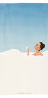 Stiilne illustratsioon naisest, kes naudib selge sinise taeva all mullivanni, käes veiniklaas. Minimalistlik disain ja pehmed pastelsed värvid loovad rahuliku ja luksusliku õhkkonna, mis sobivad ideaalselt lõõgastustubadesse või elegantseks kaunistuseks.