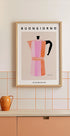 Stiilne ja minimalistlik illustratsioon mokkapotist virsiku ja roosa toonides, mille ülaosas on tekst "Buongiorno" ja all "Espresso". Ideaalne seinakunst kööki, kohvisõpradele või kõigile, kes hindavad Itaalia hommikurituaale.