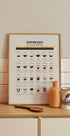 Üksikasjalik espressoplakat koos illustreeritud ülevaatega klassikalistest Itaalia kohvijookidest. Espressost ja doppiost cappuccino, latte ja affogato – see köögiplakat on ühtaegu hariv ja stiilne. Ideaalne seinakunst kohvikutesse, kohvikutesse ja koduköökidesse.