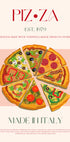 See retrohõnguline kunstiteos kujutab värvilist illustratsiooni viilutatud pitsast erinevate lisanditega, nagu oliivid ja pepperoni. 1979. aastal loodud tekstiga "PIZZA" tõstab see esile värske, omatehtud taigna ja autentse Itaalia päritolu.