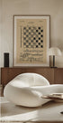 Elegantne vintage plakat originaalse patendijoonisega male- ja kabelauast aastast 1921. Peened jooned, mõõdud ja figuurinumbrid annavad tehnilise, ajatu väljenduse, mis avaldab austust klassikalisele mänguesteetikale. Disainitud Andreas Magnussoni poolt ja sobib suurepäraselt graafiliseks kujunduseks elutuppa, kontorisse või mängutuppa. Peened noodid retrotüpograafiast ja patendimarkidest.