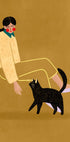 Moodne illustratsioon naisest ja tema mustast kassist, mis on kujundatud soojades neutraalsetes toonides minimalistliku, kuid samas stiliseeritud esteetikaga. See kunstiteos kiirgab hubasust, kogukonda ja armastust – ideaalne kassisõpradega kodudesse.