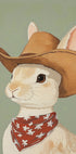 Armas ja mänguline kunstiteos kauboiks riietatud jänest, laia mütsi ja mustrilise bandaaniga. See humoorikas loomaportree ühendab rustikaalse lääneliku võlu fantaasiaküllase huumoriga – sobib suurepäraselt loomasõpradele ja veidrale kodukaunistusele.