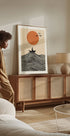 Minimalistlik illustratsioon üksikust figuurist väikeses paadis, mis hõljub lainetavatel mustadel lainetel karmi oranži päikese all. Puhtad jooned ja soojad toonid loovad rahuliku ja läbimõeldud meeleolu – ideaalne tükk kaasaegsetesse ruumidesse, mis sisaldavad rahulikkust ja lihtsust.