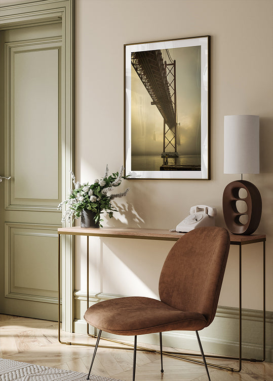 Vaikus langeb Lissaboni kohale, kui udu hõljub üle Tejo, paljastades Vasco da Gama silla siledat sildet esiplaanil oleva üksiku risti taga. Soojades seepiakollastes toonides jäädvustab fotograaf Ricardo Mateus mõtisklevat hetke usust ja arhitektuurist, kus jõgi, taevas ja linn muutuvad poeetiliseks rahuks.
