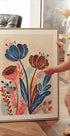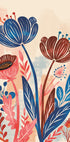 Elav botaaniline illustratsioon julgete punaste, siniste ja maalähedastes toonides lilledega pehmel tekstuursel taustal. Elav värvide ja orgaaniliste kujundite segu lisab soojust ja võlu – ideaalne ese köögi, elutoa või moodsa galeriiseina ilme andmiseks.
