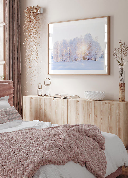 Csendes erdei térben tér vissza a téli fény: karcsú fák állnak fagyban és hóban, míg a lágy, aranyló nap áttöri a hűvös kék tónusokat, és hosszú árnyékokat vet a törzsek közé. Az EMELIEMaria "A fény visszatér" egy ragyogó, ropogós reggel nyugalmát örökíti meg, ahol a természet csendesen lélegzik, és felcsírázik a remény.