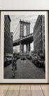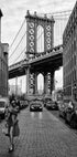 Időtlen fekete-fehér városkép, amely megörökíti az ikonikus Manhattan hidat, amely klasszikus brooklyni téglaépületek között van keretezve, az Empire State Building tökéletes elhelyezkedésével a láthatáron. Az előtérben lévő stílusos figura városi eleganciát ad hozzá, így ez a nyomat az építészet, a divat és a New York-i energia feltűnő kombinációja. Tökéletes a modern belső terekbe és azoknak, akik szeretik a városi fotózást.