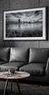 A Hudson folyón átívelő Brooklyn Bridge drámai fekete-fehér városképe Manhattan ikonikus látképével a háttérben. A hangulatot idéző felhők és a víz hosszan tartó expozíciója időtlen, filmes atmoszférát teremt, amely megragadja New York lényegét.