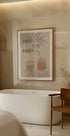 Ez a megnyugtató illusztráció a trópusi jelenlét csendes pillanatát idézi. Illóolajokkal (narancs, menta és eukaliptusz) égő illatos gyertya áll egy frissítő pohár gyümölcslé mellett, amelyet pálmalevél lágy árnyékai fürdenek. A „Free Your Mind” szavak szünetre és nyugalomra szólítanak. A tompa színekkel és minimalista nyári hangulattal rendelkező poszter fürdőszerű nyugalmat áraszt – ideális a békét, a fókuszt és a természetes egyensúlyt kereső terekhez.