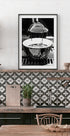 Egy eszpresszógép fekete-fehér csendélete, amely sötét cseppeket enged a várakozó csészébe. A gőz felemelkedik, a fény szikrázik az acélban, és az éles kontrasztok nyugalmat teremtenek. A reggeli rituálé és a kávézói hangulat minimalista pillanata, tökéletes arra, hogy meleget, fókuszt és jelenlétet vigyen a konyhába, a nappaliba vagy a kávézóba.