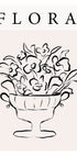 Kifinomult, minimalista vonalas rajz virágokkal teli vázáról, elegáns fekete-fehér stílusban. Az egyszerűséget a kifinomultsággal ötvöző műalkotás időtlen virágmintaként működik a modern és kortárs belső terekben.