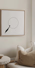 Járd a kört! Huib Limberg monokróm, konceptuális jelenete, amelyben egy magányos, fekete öltönyös férfi mozog egy körkörös folyosón, koncentrikus gyűrűk között. A grafikus geometria egy végtelen hurok optikai illúzióját hozza létre, amely egyensúlyt teremt a nyugalom, a feszültség és a skandináv minimalizmus között. Ideális modern falakhoz.