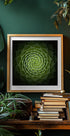 Hipnotikus közeli poszter egy zamatos növényről, tökéletes rozetta formájú, készítette Victor Mozqueda. A zöld levelek Fibonacci-szerű spirálba csavarodnak, finom szőrszálakkal és finom vignettázással, amely kiemeli a szerkezetet és a mélységet. Botanikai, geometrikus motívum, amely nyugodt és modern eleganciát ad. Tökéletes fókuszpont a nappaliban, az irodában vagy a hálószobában.