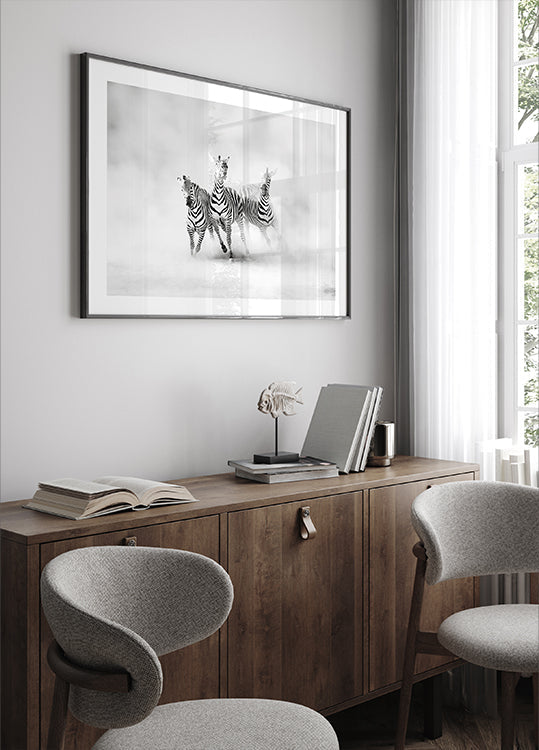 ZEBRAS by Juan Luis Duran - Prémium minőségű papír sima matt felülettel és elegáns tapintással. A matt felület csökkenti a tükröződést, és kifinomult, időtlen megjelenést kölcsönöz. Erős és tartós a hosszan tartó használathoz, ideális professzionális beállításokhoz és dekoratív kijelzőkhöz egyaránt.