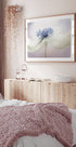 Dës dreemt Makrofoto erfaasst déi fragil Eleganz vun enger japanescher Anemone a mëllen Nuancen vu wäiss a Lavendel. Mat sengen äthereschen Bléieblieder an detailléierte Stämme strahlt d'Konschtwierk Rou a Rengheet aus, schaaft e raffinéiert botanescht Wierk dat Stillheet mat zäitloser floraler Schéinheet kombinéiert.