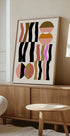 Dëst abstrakt geometrescht Konschtwierk weist fett Formen an Äerdtéin kontrastéiert mat rosa a schwaarz op engem pure wäissen Hannergrond. Inspiréiert vun der Bauhaus Ästhetik, kombinéiert d'Kompositioun Gläichgewiicht, Rhythmus a modernen Minimalismus, a schaaft e markant Stéck dat all modernen Interieur erhéicht.