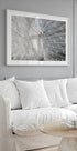 Eng atemberaubend Plakat vun engem wäisse Pfauen mat senge Fiedere voll ausgedehnt, ausstrahlt Rengheet a Gnod. Déi markant Zesummesetzung erfaasst dem Vugel seng majestéitesch Schéinheet a rouegen Detail, e Gefill vu Fantasie an Engel Eleganz. En Aenopfang deen d'Wonner vun der Natur mat artistescher Raffinesséierung kombinéiert.
