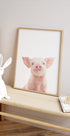 En häerzzerräissend Portrait vun engem Piglet gefaange géint e pure wäissen Hannergrond. De rosa Maulkuerf, déi sanft Aen an de spillereschen Ausdrock ginn e Gefill vun Onschold a Charme. Perfekt fir Bauerenhaffdekoratioun, Kannerzëmmer oder fir jiddereen deen léif Déiereportraiten gär huet.