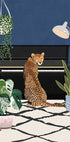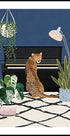 Eng sprëtzeg a stilvoll Illustratioun vun engem Gepard, deen um Piano sëtzt, ëmgi vu üppige Hauspflanzen a modernen Dekor. Mat staarke Faarwen a spillereschen Detailer kombinéiert d'Aarbecht Musek, Déieren an Interieur Charme, a gëtt eng eenzegaarteg Ausso fir Déierefrënn an Designbegeeschterten.